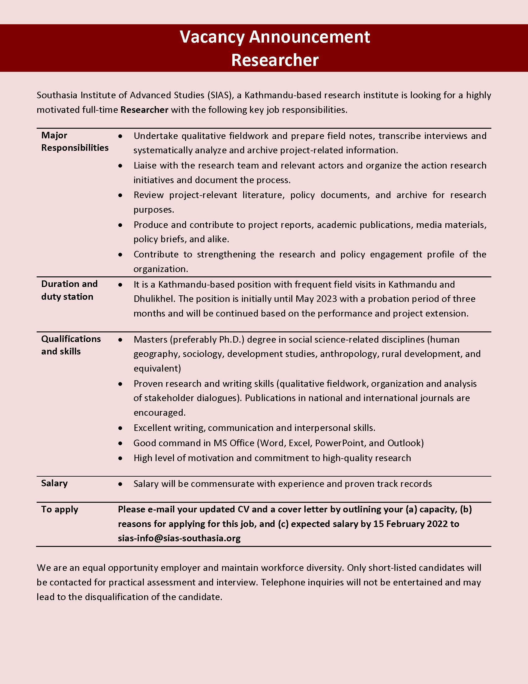 Vacancy Announcement (Closed)